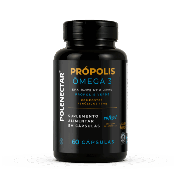 The benefits of Brazilian Propolis and Omega 3 together in one product, in easy-to-swallow highly concentrated softgel capsules. PET FLASK CONTAINING 60 CAPSULES.